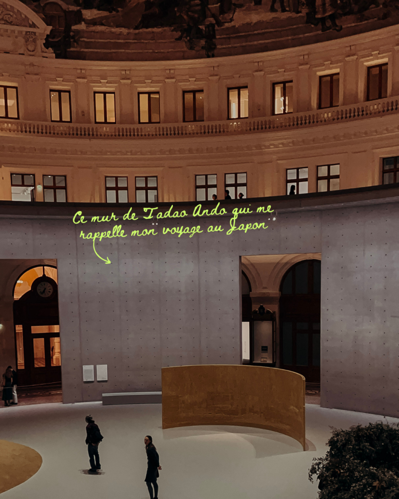 Si tu ne connais ni le lieu ni l’exposition, imagine un espace immense, presque un ovni de l’architecture avec le mur de Tadao Ando, qui te pousse forcement à ralentir. Et l’exposition est superbe pour ça.