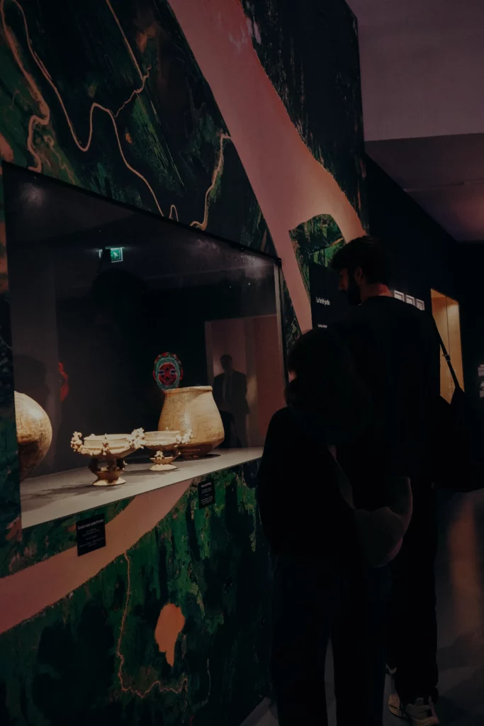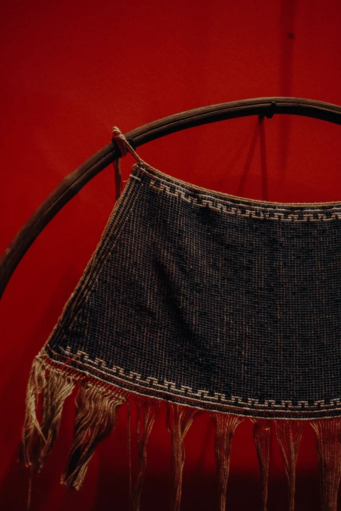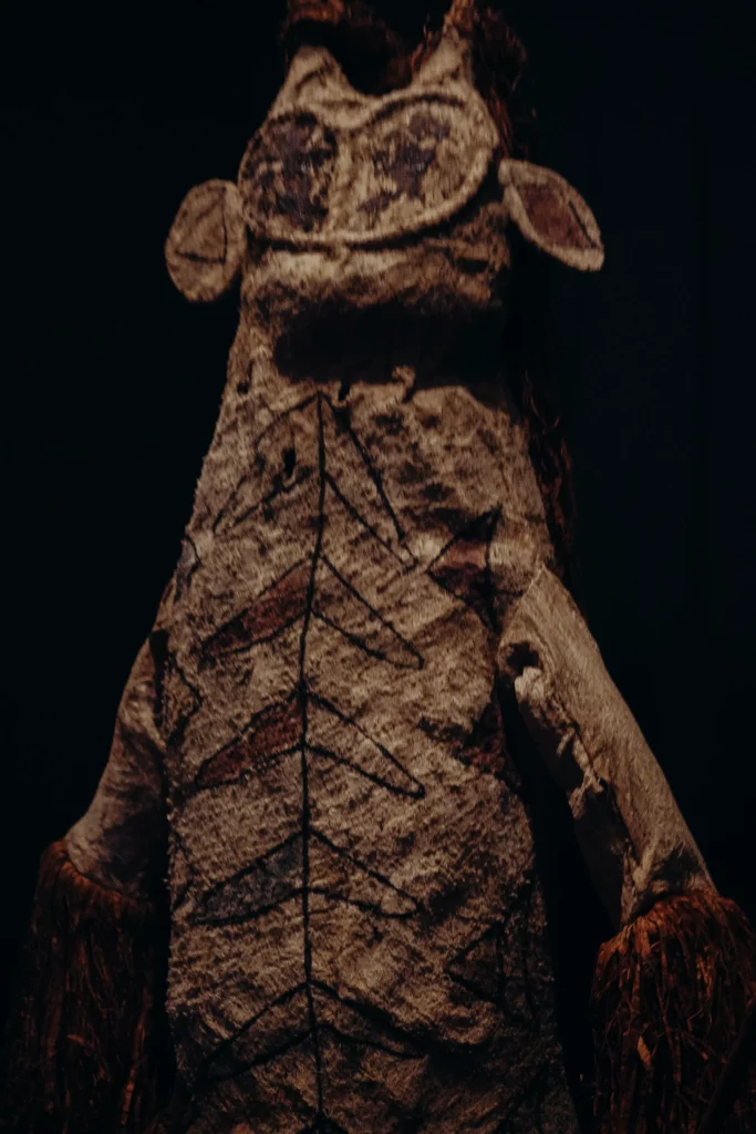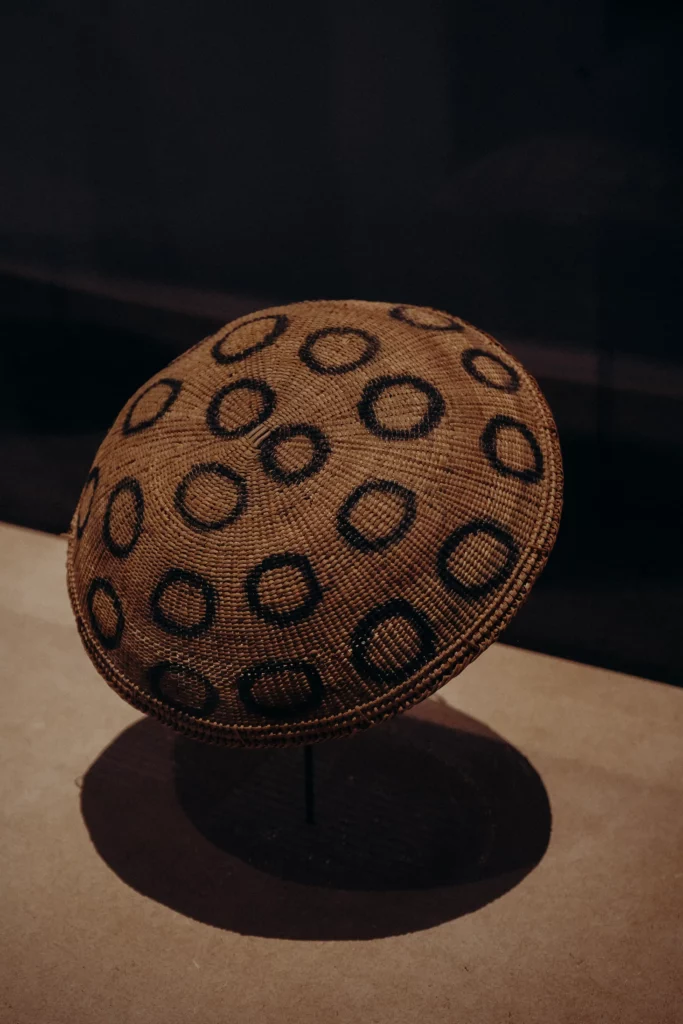 Le début du parcours s’impose comme l’un des moments les plus réussis de l’exposition. Les coiffes, les objets minutieusement fabriqués, la richesse des matières et des formes captivent immédiatement. La scénographie, particulièrement soignée, joue un rôle essentiel : elle enveloppe le visiteur dans une atmosphère presque sensorielle.