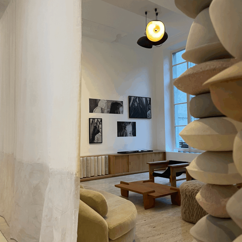 Ici, changement de rythme. On entre dans un univers plus intime, presque flottant. Tout d’abord, nous avons été surpris par la beauté de la galerie, elle est si belle, si gracieuse et chaque matière est bien pensée.